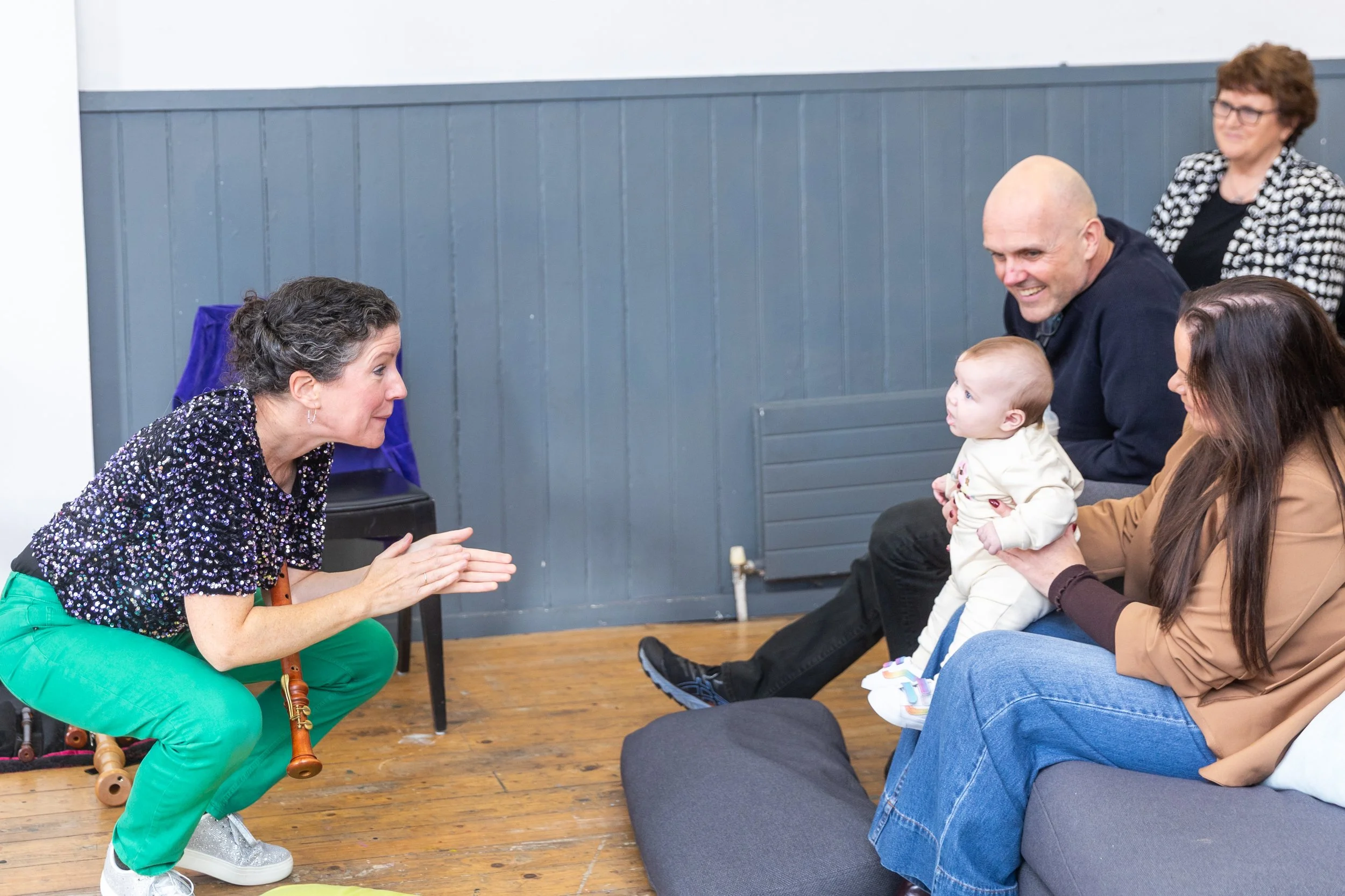 Our educational activities began during the week leading up to the festival, where festival artists Laoise McMullin (Harpsichord) , Caitriona O’Mahony (Viola) and Sarah Kilcoyne (Mezzo) went on tour with Festival in a Van to 6 primary school in north Sligo. The Woodpeckers Recorder Quartet took their schools’ concert to 4 Sligo town schools, where the lucky students got to see and hear the recorder in a completely light! The Woodpeckers were busy during the festival as they also presented a beautiful parent and baby concert at The Model, as well as a free outdoor community concert in Queen Maeve Square with Festival in a Van. Baritone Cuan Durkin (from our 2024 The Fairy Queen cast) also made a special guest appearance with the Van!